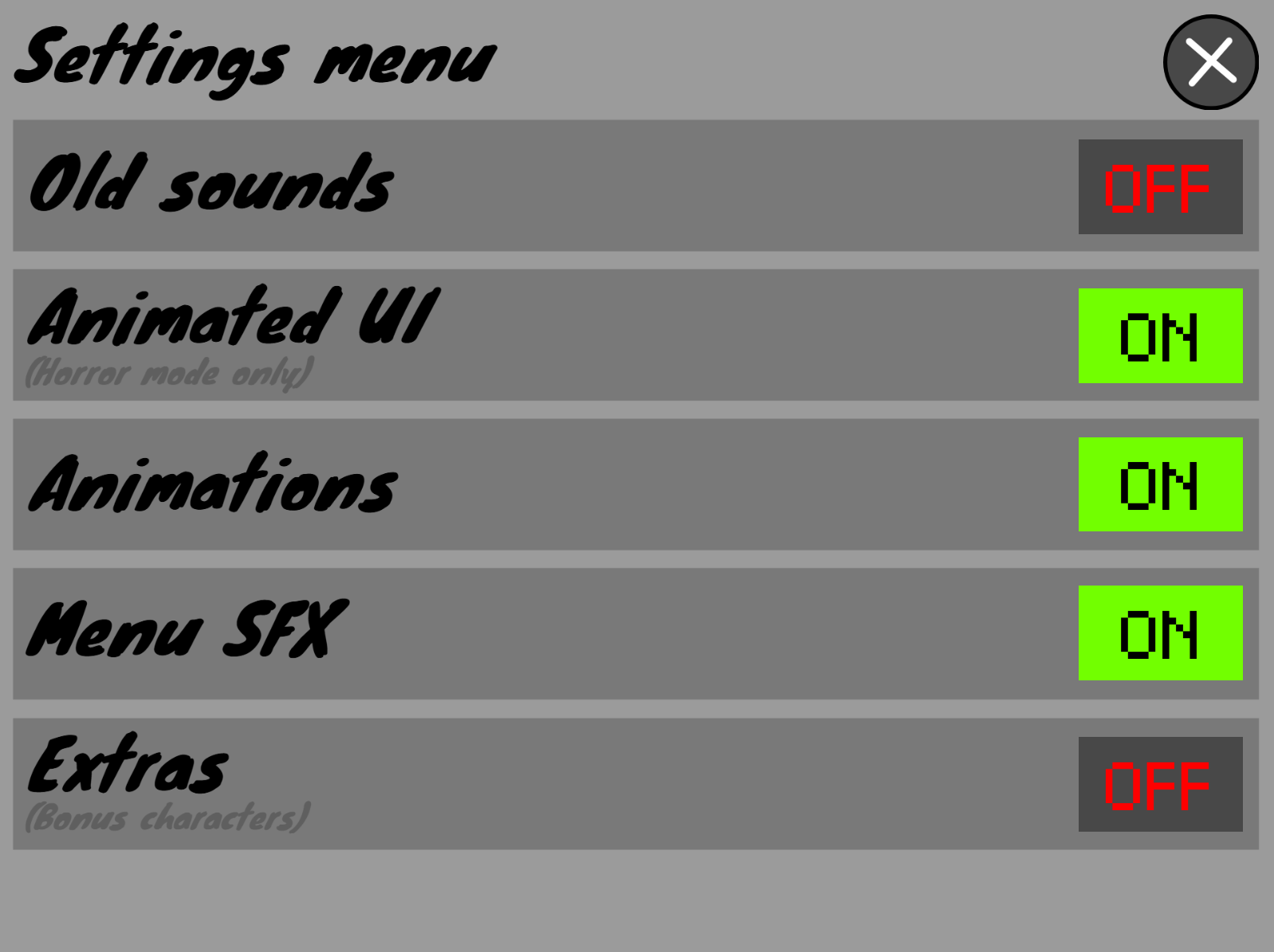 its nice to see old sounds button for those that like to switch mid mix but unfortunately only oren is affected by the button in horror mode (and for some reason keeps him stuck in the fakeout sprite)